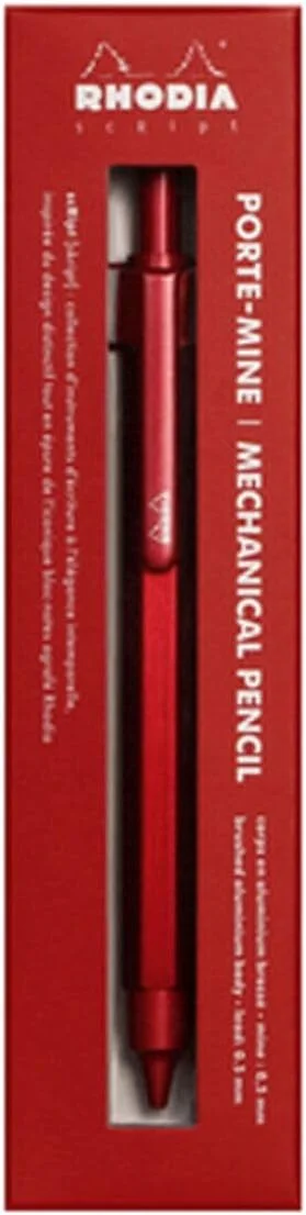 Druckbleistift von Rhodia für Standard-Graphitminen 0,5 mm. Hexagonaler Schaft aus gebürstetem Aluminium. Versenkbare Minenführung aus Stahl. Radiergummi unter dem Druckknopf. In Kartonschachtel mit Fenster, die mit einer transportablen Blisterverpackung aus Kunststoff geschützt wird.