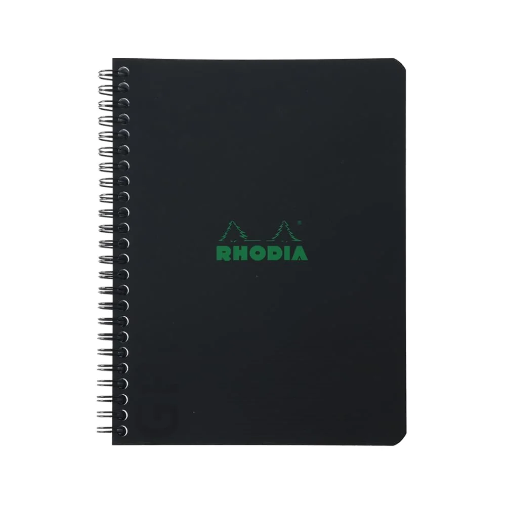 Rhodiactive Greenbook A5+ mit Spiralbindung, 80 Blatt liniert mit Kopfleiste, 6-fach gelocht, Recyclingpapier 90g - Schwarz - New